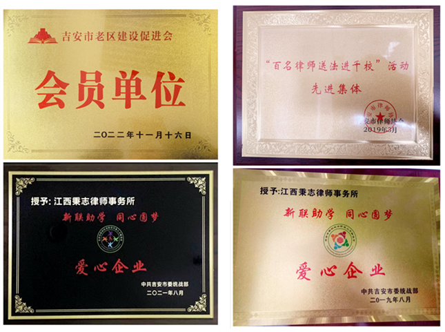 ​ 豫章(吉安)律所事务所荣誉: