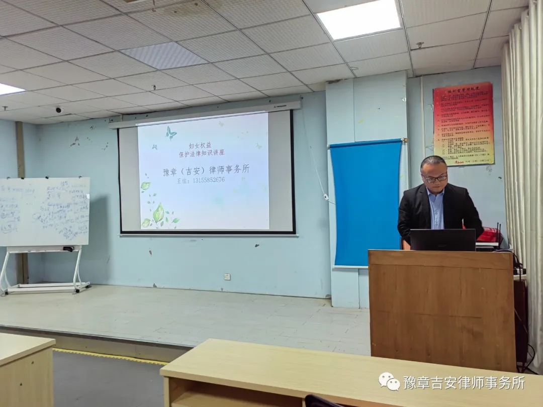 活动中,豫章(吉安)律师事务所王佳律师通过生动的案例,结合妇女群众切身实际就妇女权益保护、遇到家暴如何处理维权、如何认定夫妻共同财产、如何认定夫妻共同债务、孩子抚养权四个方面,对《妇女权益保障法》、《反家庭暴力法》等与妇女生活密切相关的法律、法规进行了详细讲解。针对妇女在生活中经常遇到的婚姻纠纷、财产分割、家庭暴力等法律问题进行了详细讲解,教育引导广大妇女遭遇家暴、虐待、遗弃或其他权益受损等恶劣行为时,知道如何申请法律援助,维护自身正当权益,倡导大家积极学习相关的法律知识。