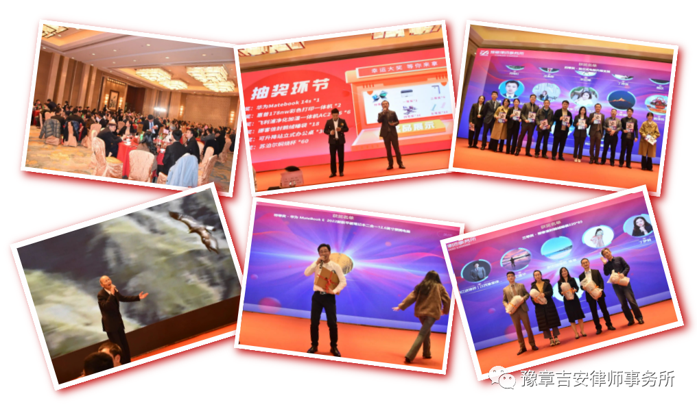 2月18日晚,会议结束后,在大家拍完集体照的一片欢声笑语中,全所同仁共赴晚宴、欢聚一堂、共迎新春,并进行了翘首期盼的年会抽奖环节。吉安分所积极参与并有幸九人均中奖。会场氛围其乐融融,大家共同祝愿豫章律所的明天更美好!